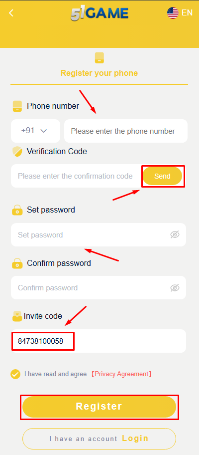 - Enter invitation code : 8473100058